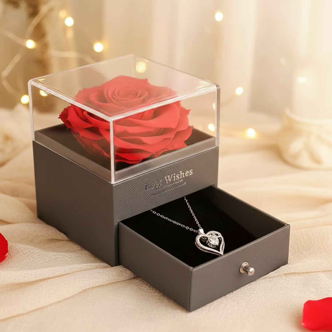 Poklon Set Večna Ruža sa Ogrlicom Iznenađenja je izbor koji ne razočarava.